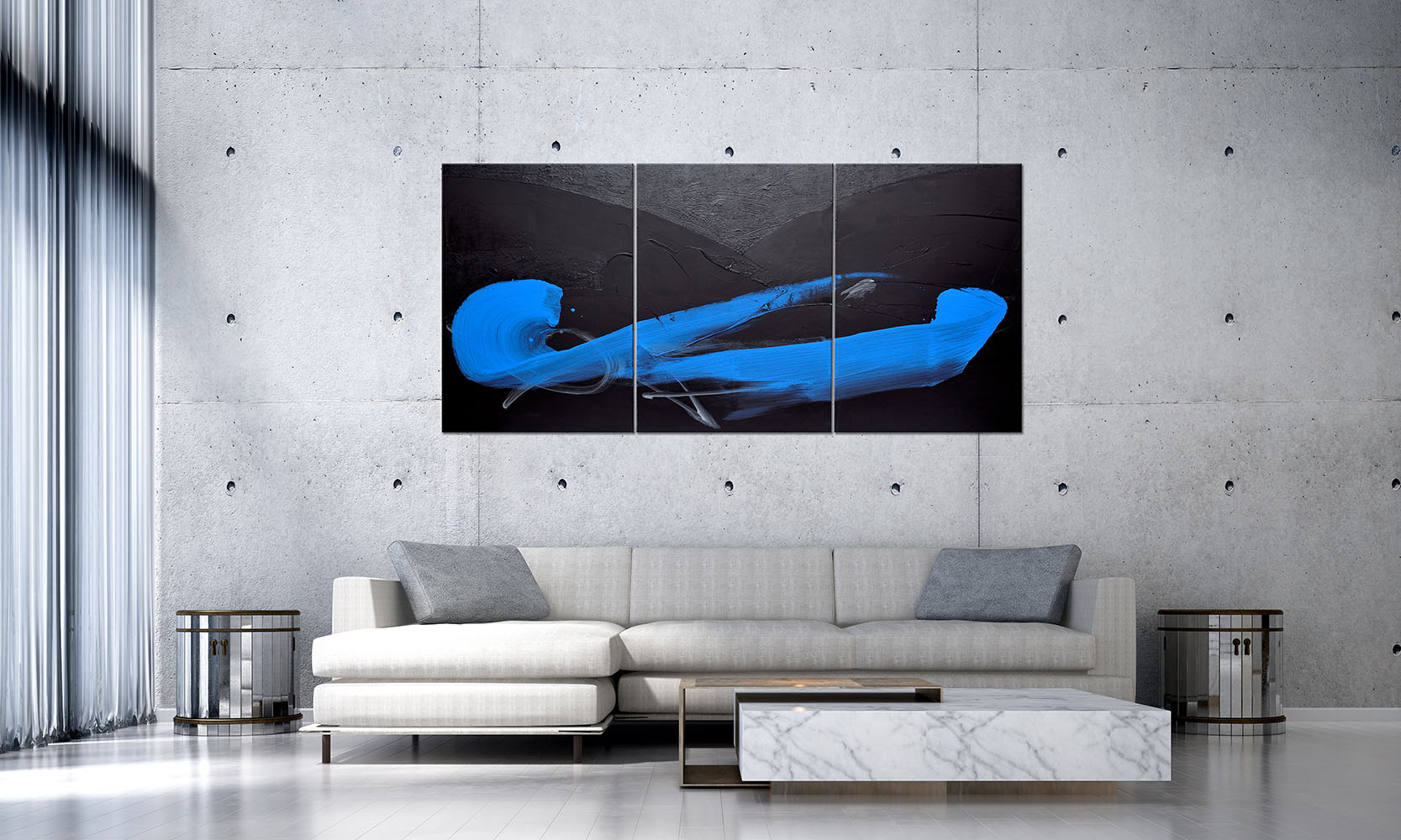 | Étiquettes | bleu|calligraphie|noir|Tableau grand format|triptyque |