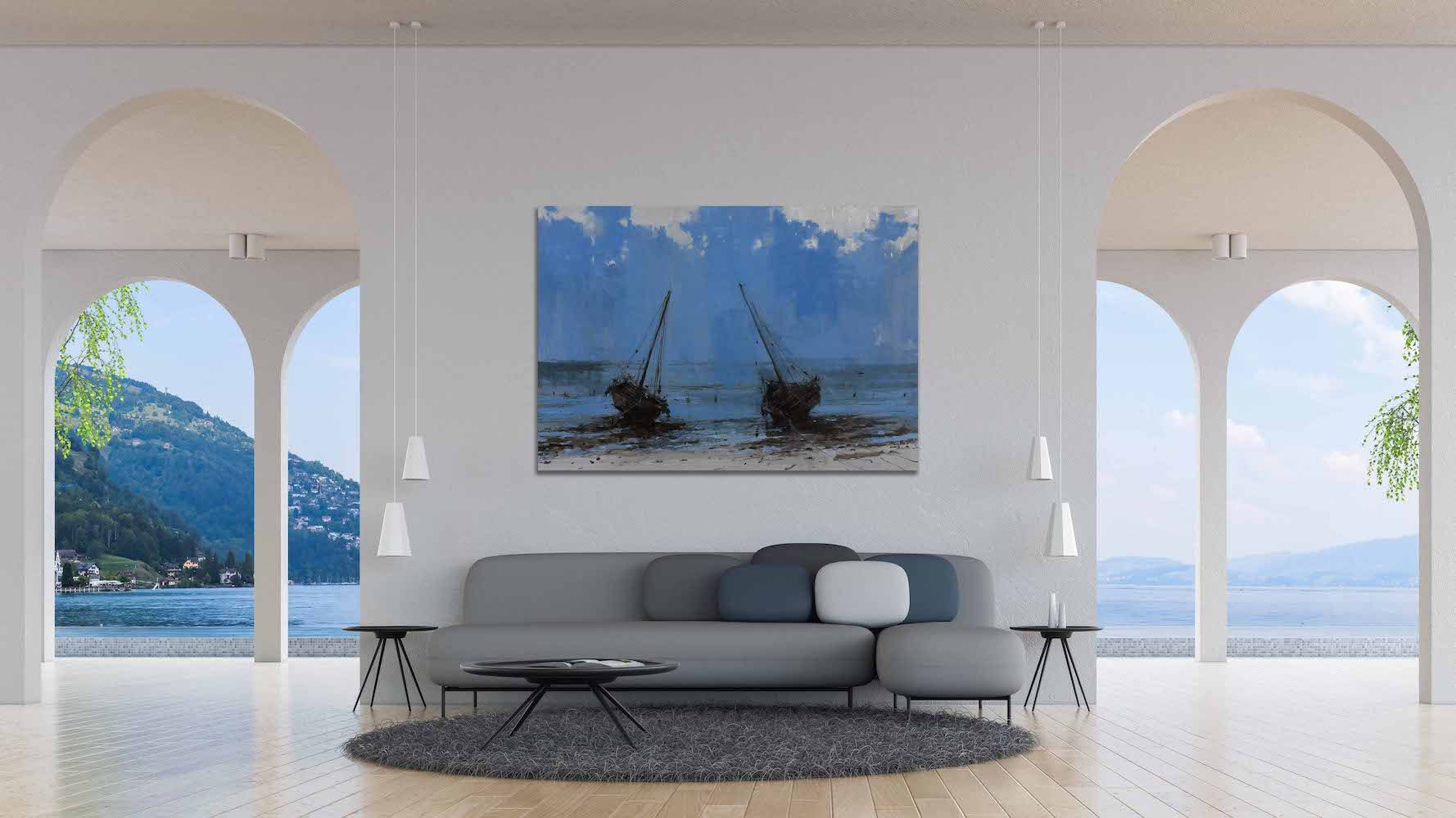 | Étiquettes | bateau|bleu|mer|Tableau grand format |