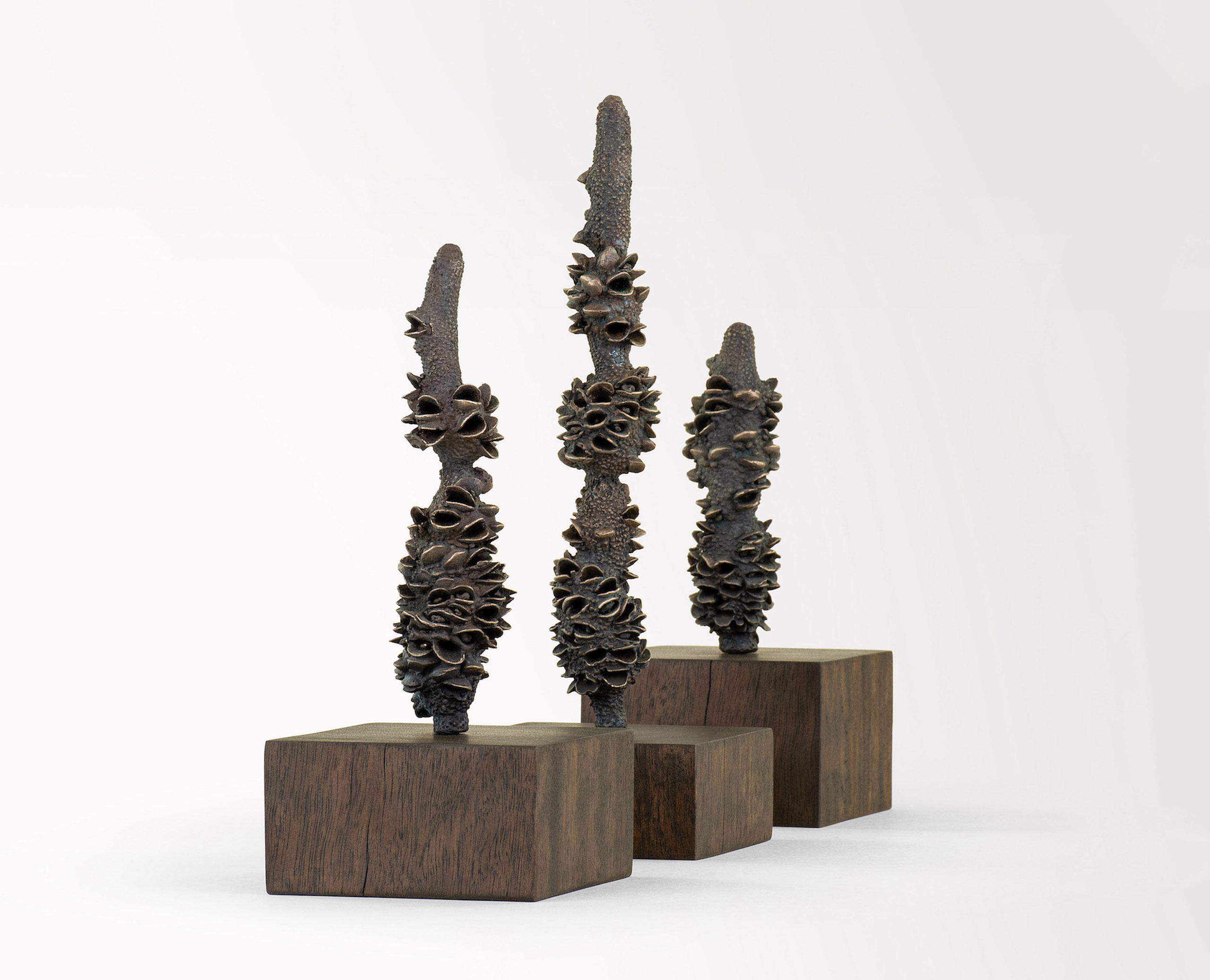 La série « The immortals » met en lumière des formes qui semblent ordinaires — dont celles des gousses de certains végétaux, comme l’eucalyptus — car elles parsèment les paysages. Coulés dans le bronze, ces fragments éphémères sont immortalisés et érigés en tant que totems.