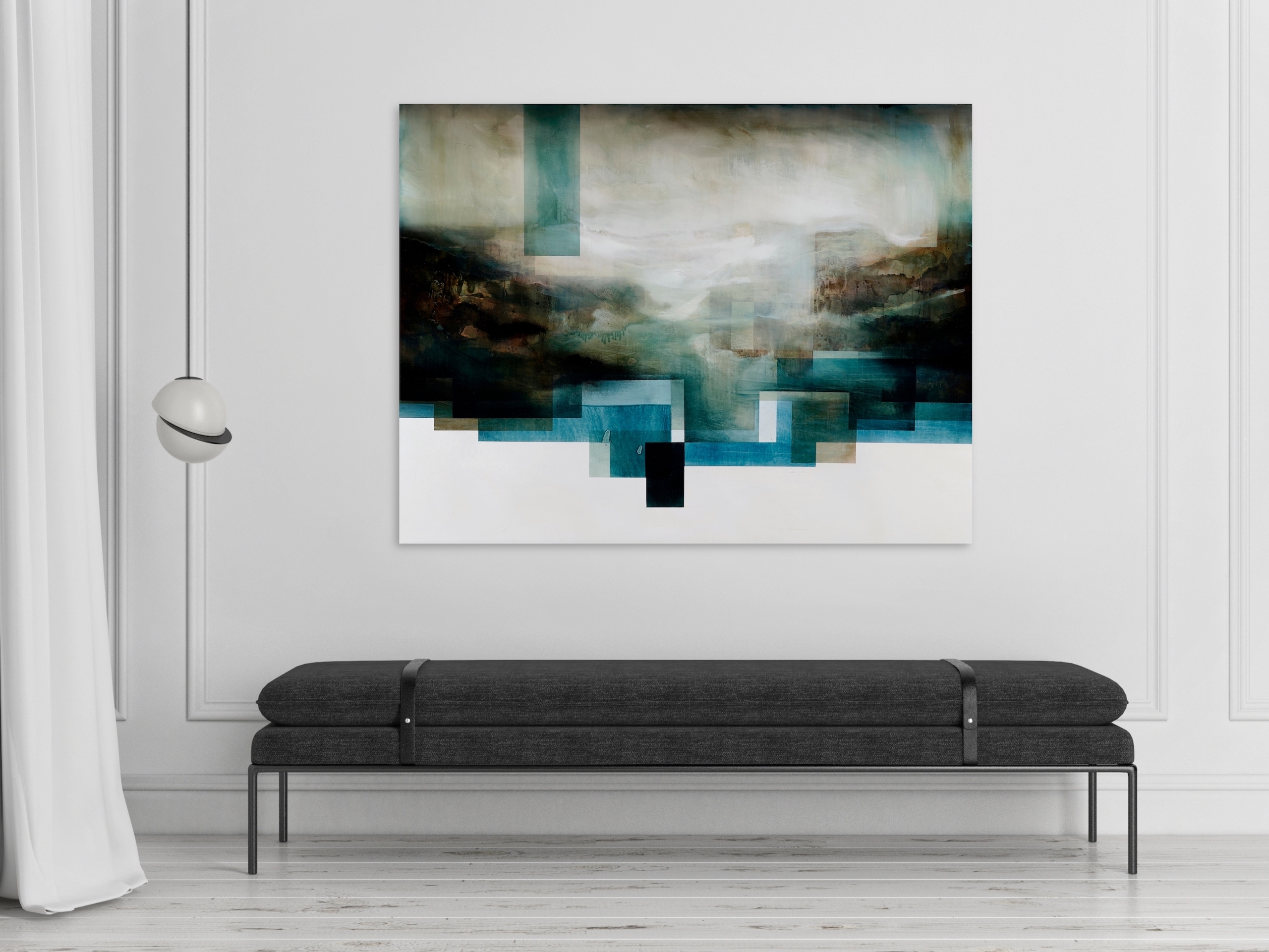 Travelling Without Moving V est un tableau de l’artiste contemporain néerlandais Joachim Van der Vlugt. Cette huile sur toile est une composition abstraite qui pourrait évoquer une peinture de paysage.