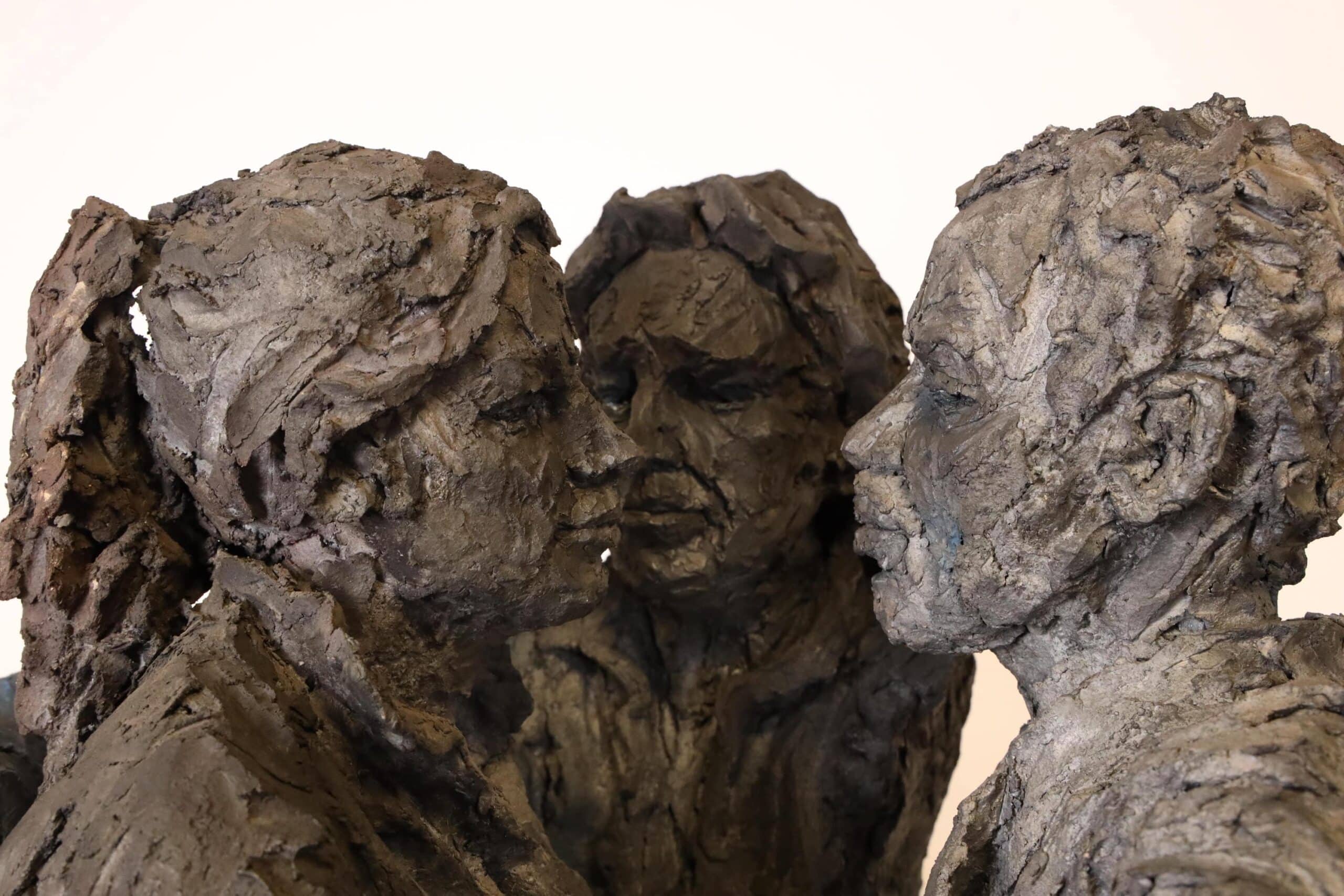 Trois marins est une sculpture en grès enfumé de l’artiste contemporaine Cécile Raynal.