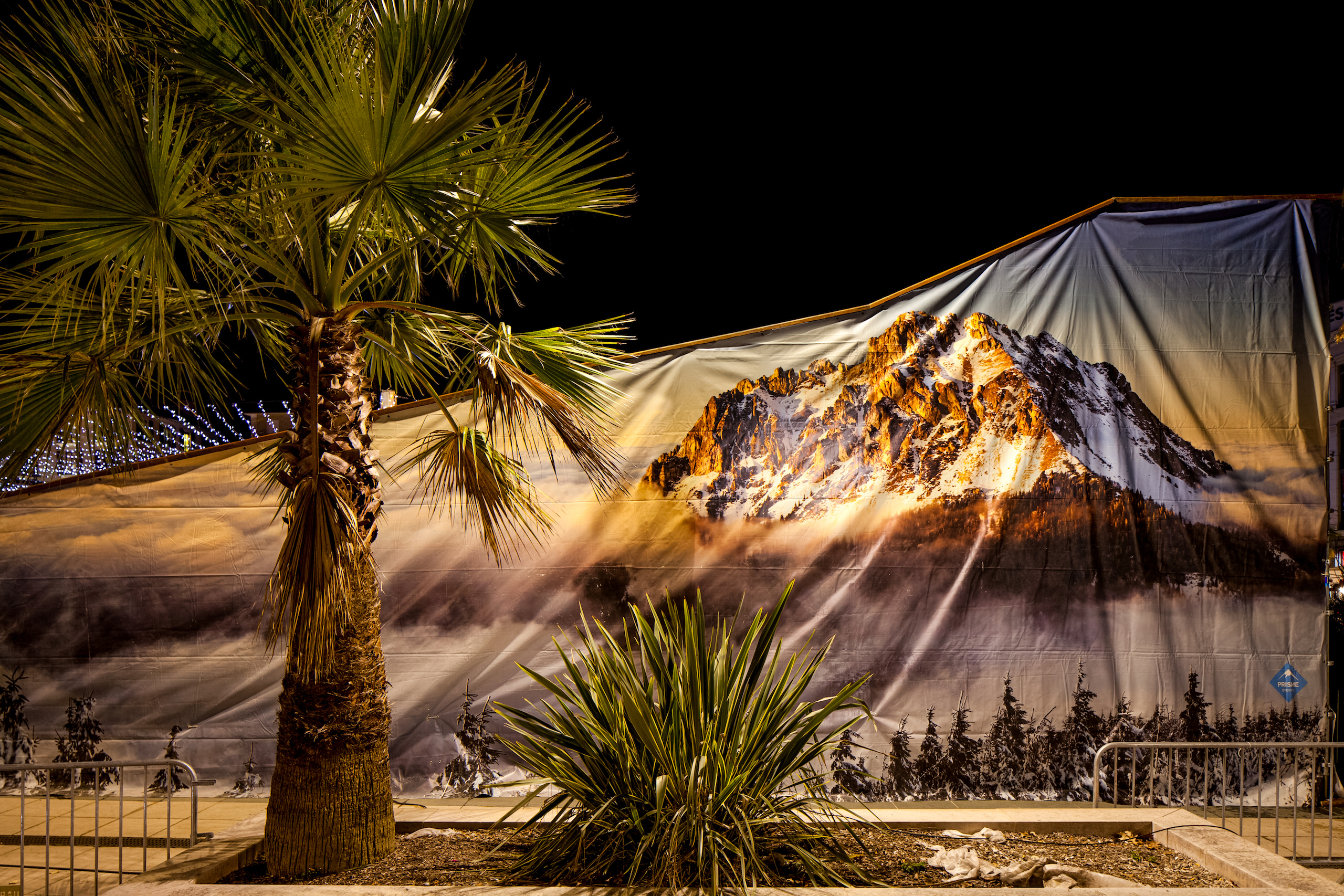 Dans la série « Tropique des Pyrénées », la végétation exotique, les lumières, les publicités et les champs de béton envahissent la ville de Pau, dans le sud-ouest de la France. Les paysages des Pyrénées revêtent ainsi — et de manière inattendue — l’esthétique urbaine de la Floride ou de la Californie. Ce décalage déroute le spectateur et le pousse à se questionner sur les absurdités des mutations urbaines actuelles. À travers ces décors nocturnes hollywoodiens, Xavier Dumoulin compose des photographies vibrantes, presque cinématographiques, qui portent un regard critique sur la place de l’homme dans son environnement et matérialisent les conséquences du changement climatique.