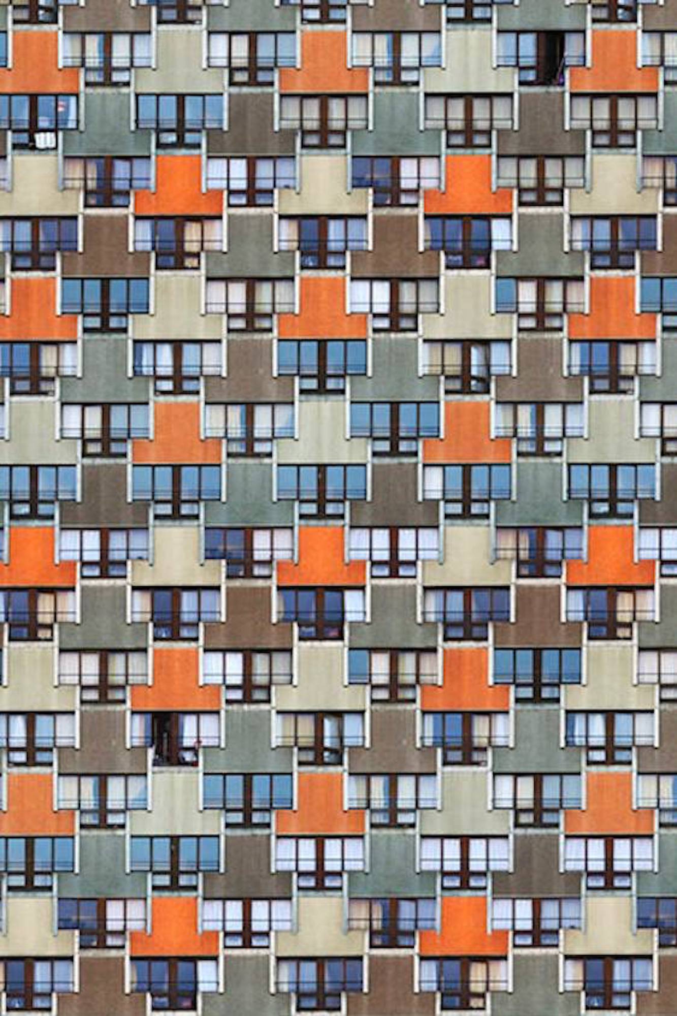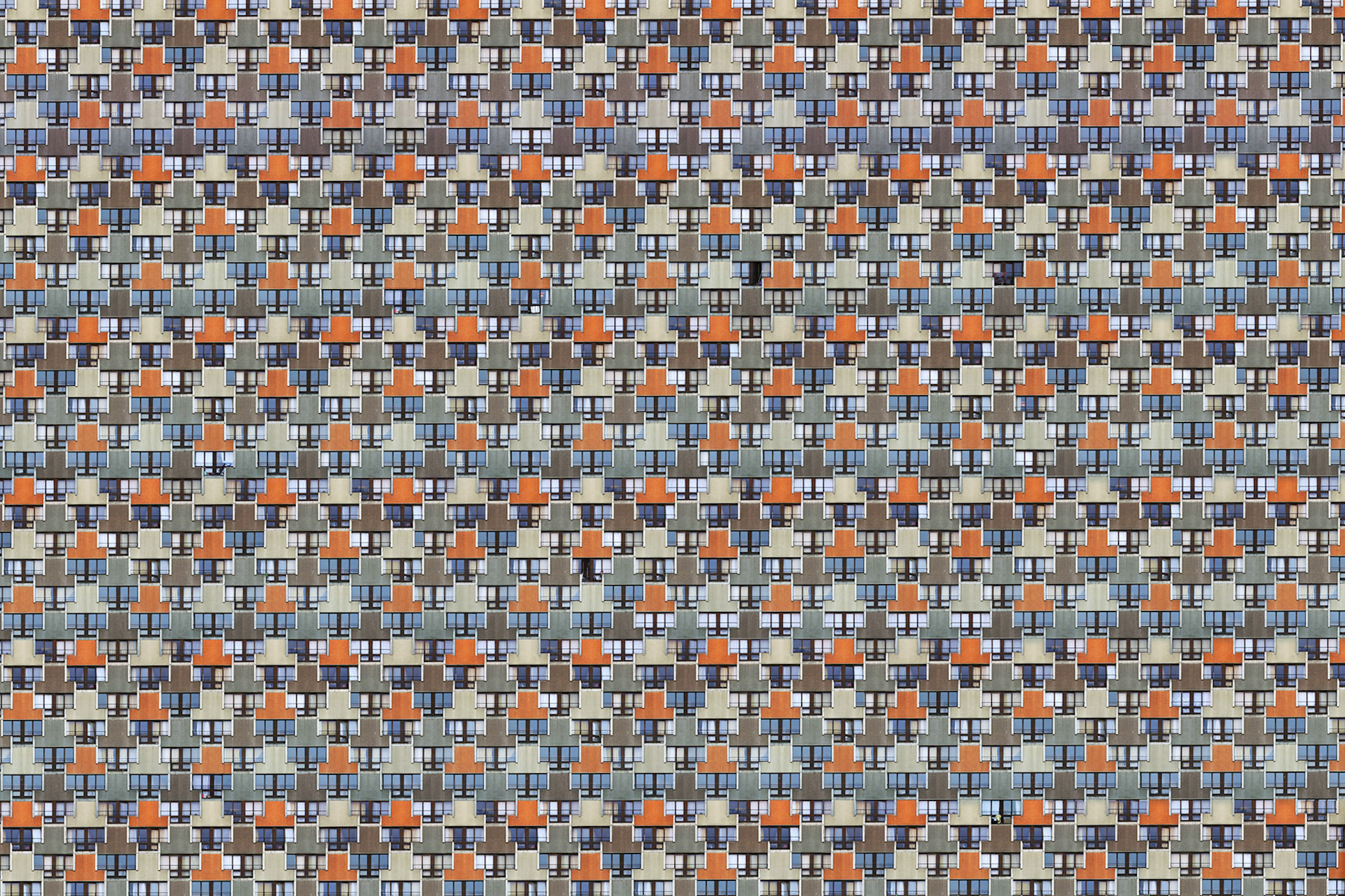 La série ‘Urban Wallpapers’ donne à voir des répétitions architecturales. Façades, fenêtres ou encore balcons d’un immeuble forment une mosaïque graphique et saturent l’image. Christian Caujolle, fondateur et ancien directeur de l’Agence Vu, commente : « Cette saturation du motif sur des éléments architecturaux parle d’aujourd’hui. De conditions de vie, jusqu’à l’étouffement, de conventions, jusqu’à noyer l’élément fonctionnel dans sa seule forme répétée, de surface et d’apparences derrière lesquelles vivent des gens, des familles, nos contemporains. » Cette série ‘Urban Wallpapers’ — véritable travail de mémoire sur des immeubles désormais détruits — est née d’un hasard, d’une opportunité. Bruno Fontana a eu accès à 140 appartements peu avant la destruction de l’édifice. L’artiste s’est ainsi imprégné des lieux pendant cinq jours et il a notamment saisi les détails, les menus objets, révélateurs de l’intimité des anciens propriétaires.
