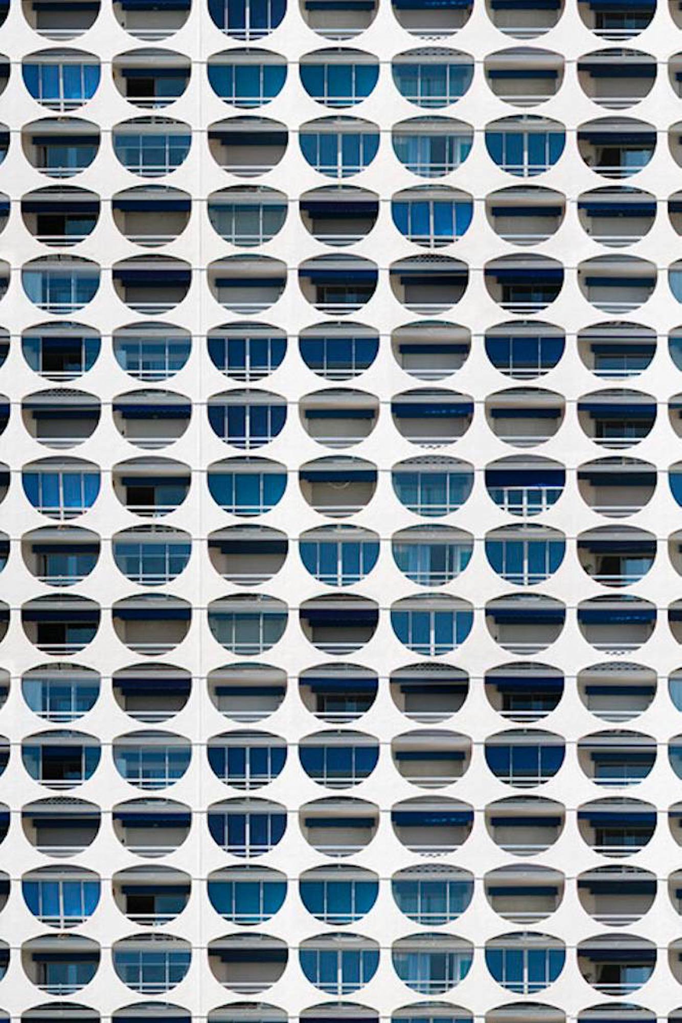 La série ‘Urban Wallpapers’ donne à voir des répétitions architecturales. Façades, fenêtres ou encore balcons d’un immeuble forment une mosaïque graphique et saturent l’image. Christian Caujolle, fondateur et ancien directeur de l’Agence Vu, commente : « Cette saturation du motif sur des éléments architecturaux parle d’aujourd’hui. De conditions de vie, jusqu’à l’étouffement, de conventions, jusqu’à noyer l’élément fonctionnel dans sa seule forme répétée, de surface et d’apparences derrière lesquelles vivent des gens, des familles, nos contemporains. » Cette série ‘Urban Wallpapers’ — véritable travail de mémoire sur des immeubles désormais détruits — est née d’un hasard, d’une opportunité. Bruno Fontana a eu accès à 140 appartements peu avant la destruction de l’édifice. L’artiste s’est ainsi imprégné des lieux pendant cinq jours et il a notamment saisi les détails, les menus objets, révélateurs de l’intimité des anciens propriétaires.