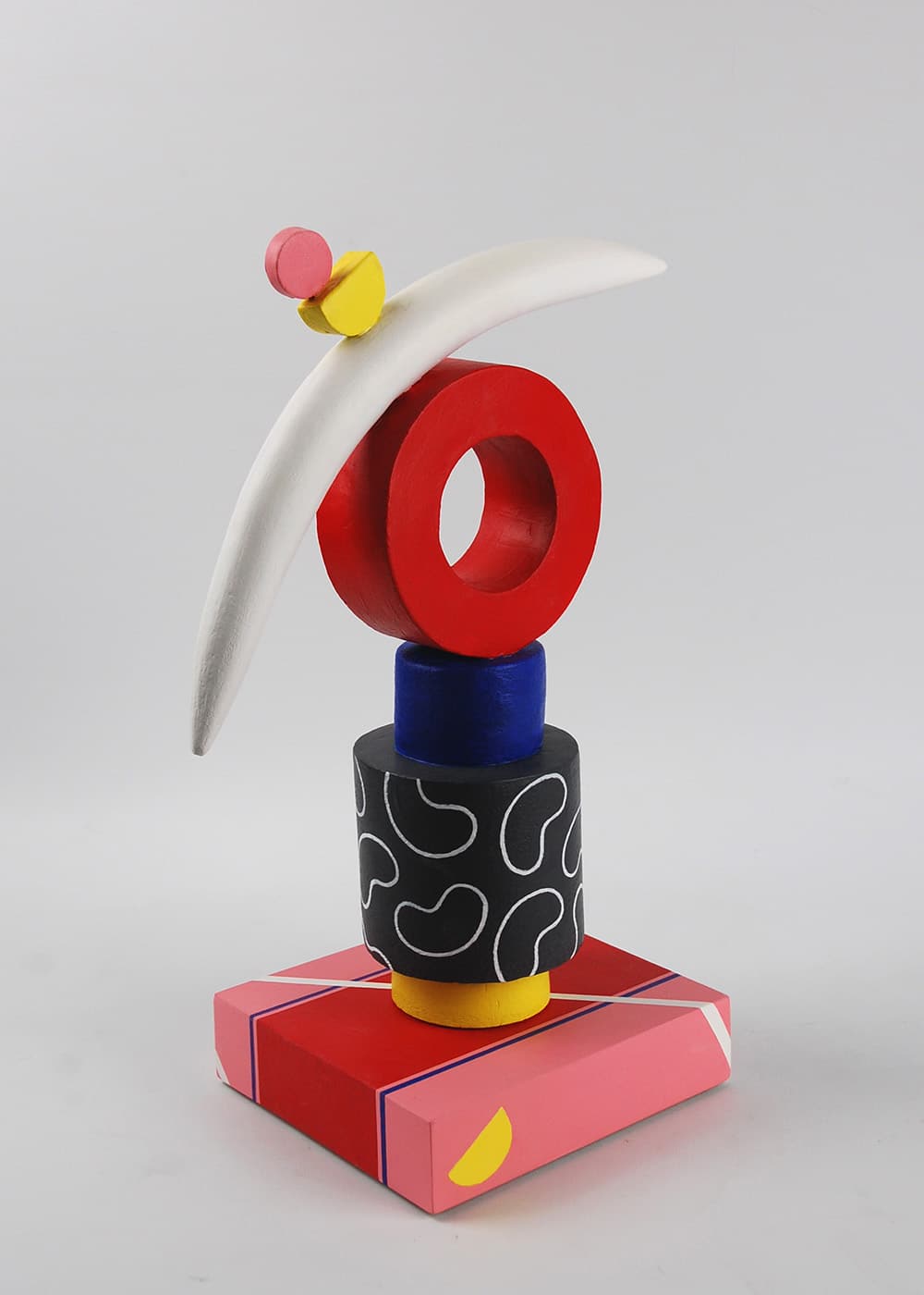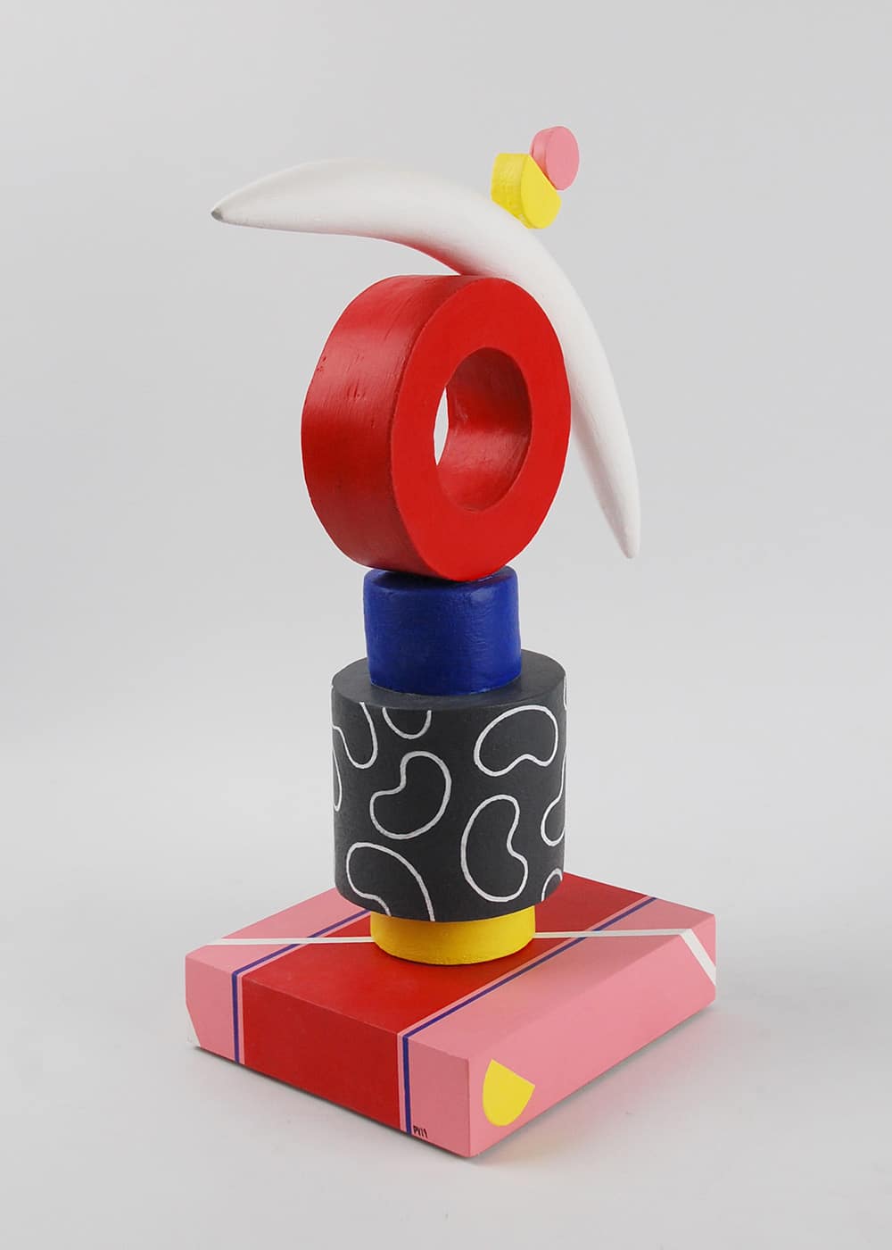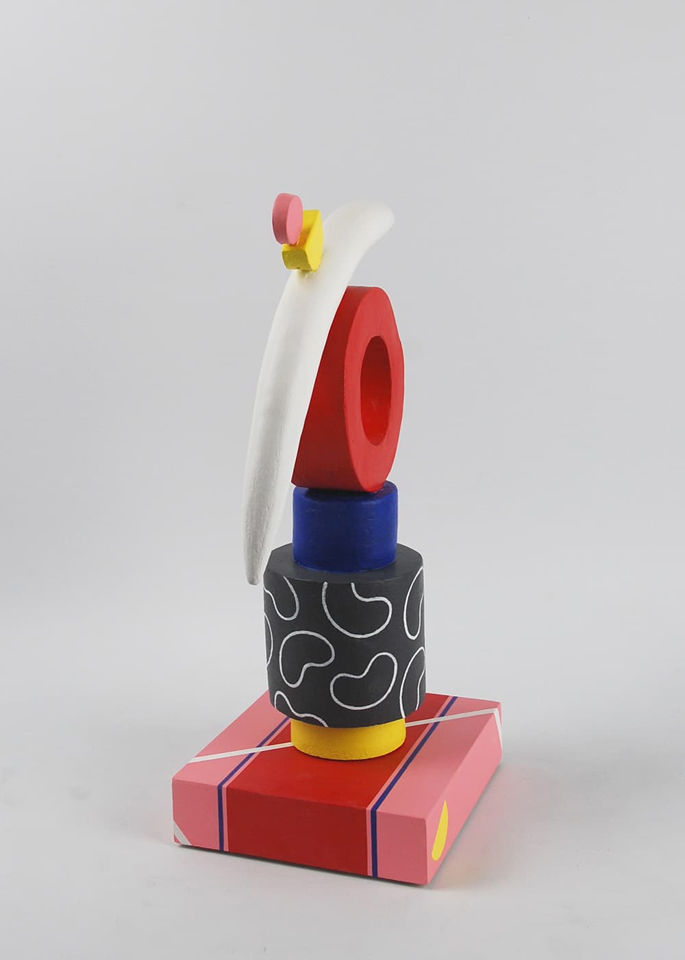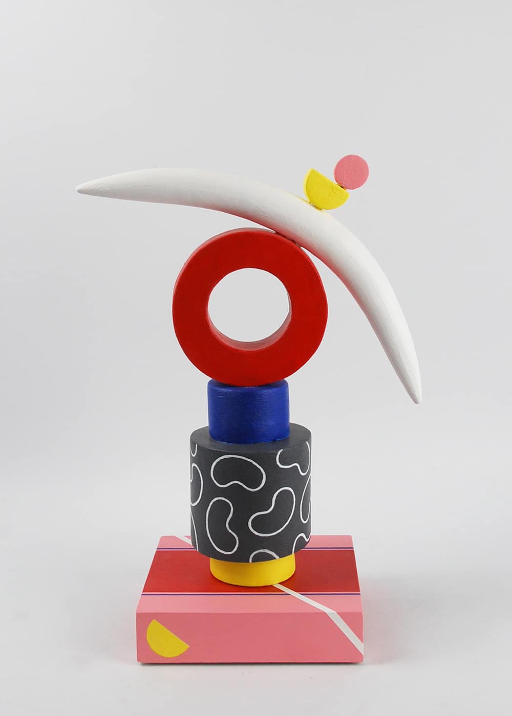 En s’inspirant de la tradition américaine de la céramique peinte (‘painted fired clay’), Patricia peint ensuite ses sculptures avec la peinture acrylique, choisissant la combinaison des couleurs de façon intuitive et subjective mais en même temps très réfléchie. Les couleurs utilisées, intenses et vibrantes, emphatisent les formes de la sculpture, les équilibres et les contrastes entre puissance et fragilité, stabilité et oscillation, poids et légèreté. Elles suggèrent ainsi des idées aux observateurs, telles que la tranquillité, le conflit ou encore le sens de mouvement.