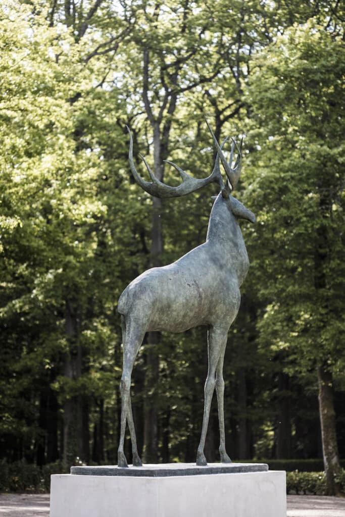 Wishing to honor the memory of the location and to showcase the unspoiled natural surroundings, the H8 group approached Artistics with a request to design a monumental sculpture. In the end, the client chose the proposal submitted by Pierre Yermia, consisting of a 3-meter (10-foot) deer. This monumental bronze sculpture now welcomes hotel guests upon their arrival.